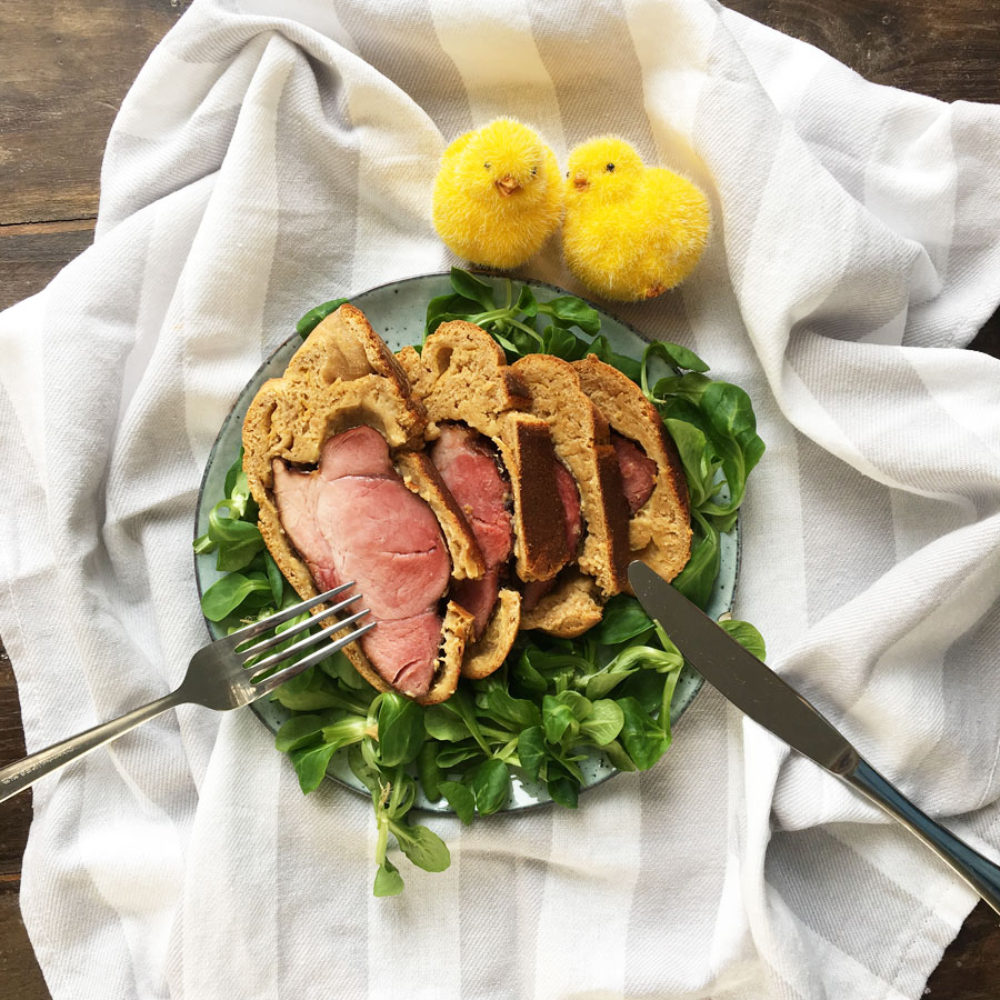 - Im vorgeheizten Backrohr den Osterschinken bei 210 °C Ober/Unterhitze ca. 20-25 Minuten backen, bis der Teig goldgelb ist. Anmerkung: optional wenn der Teig außen schon zu dunkel ist, nach ca.15 Minuten den Teig mit Backpapier oder Alufolie abdecken, damit er außen nicht zu dunkel wird.